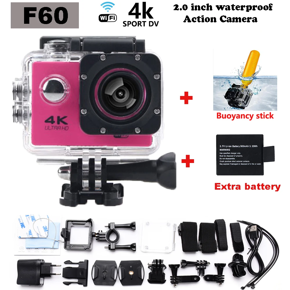 Main Features : Free Shipping hero 4 style Action Camera 4K F60 WiFi Sport Camera 1080P 30M Waterproof mini Cam HD DV Add Battery+Buoyancy stick