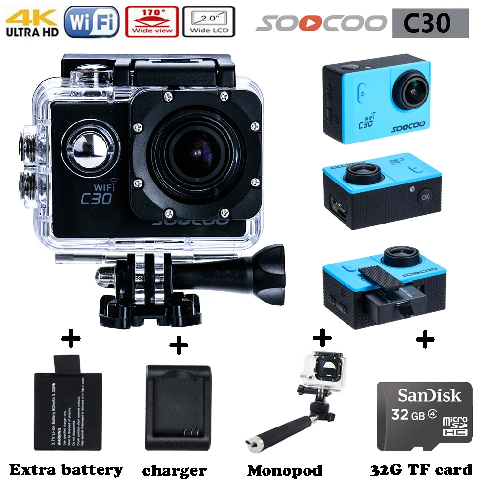 Main Features : HOT Go pro style SOOCOO C30 Wifi Action Camera Ultra HD 16MP 4K 2.0 Screen Angle Adjustable Waterproof Outdoor Sports Action Cam