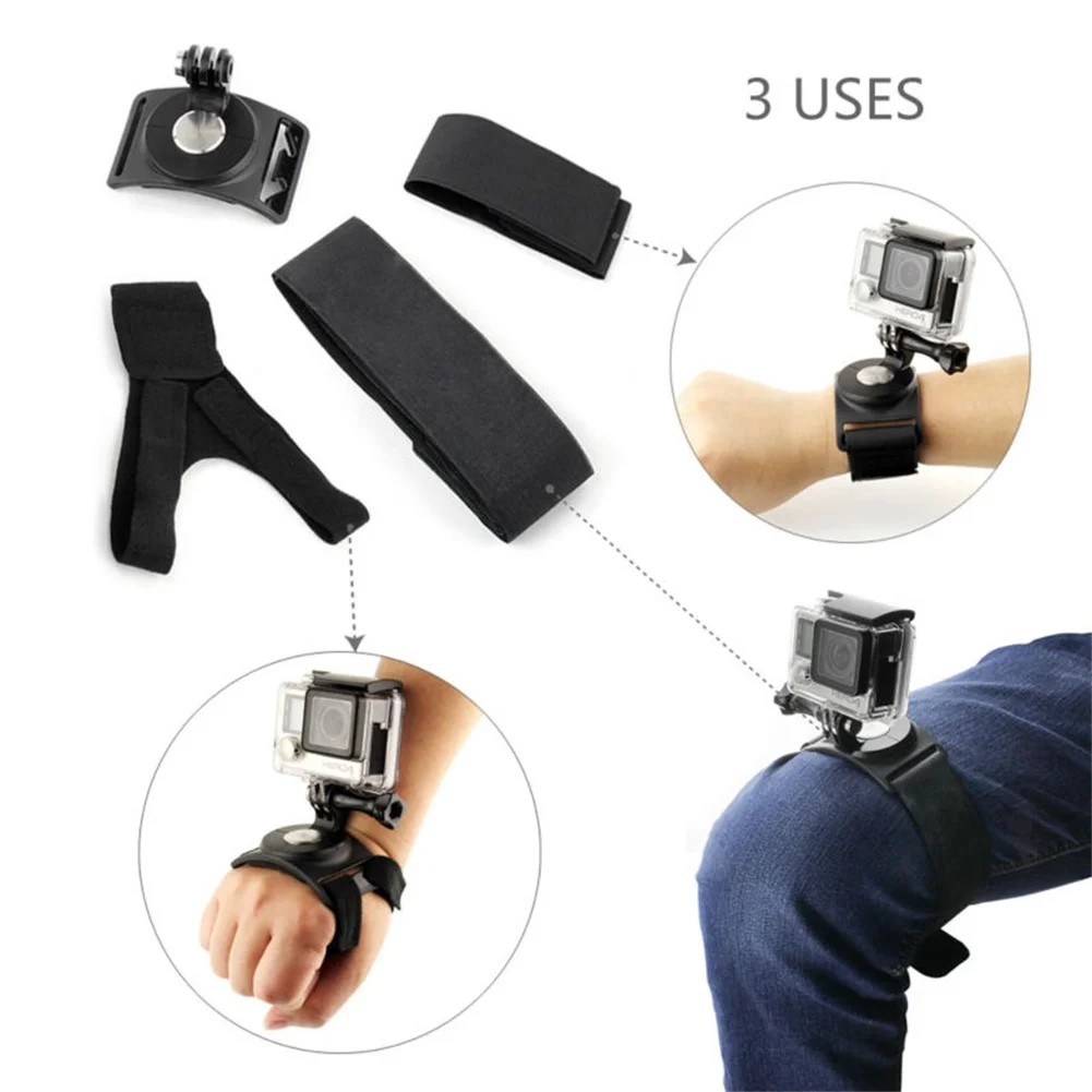 Main Features : 3 in 1 360 Degree Rotary Swivel Elastic Glove Mount Wrist Leg Strap for GoPro Hero 5 4 3 2 SJ4000 SJ5000 Xiaomi YI 4K Action CAM