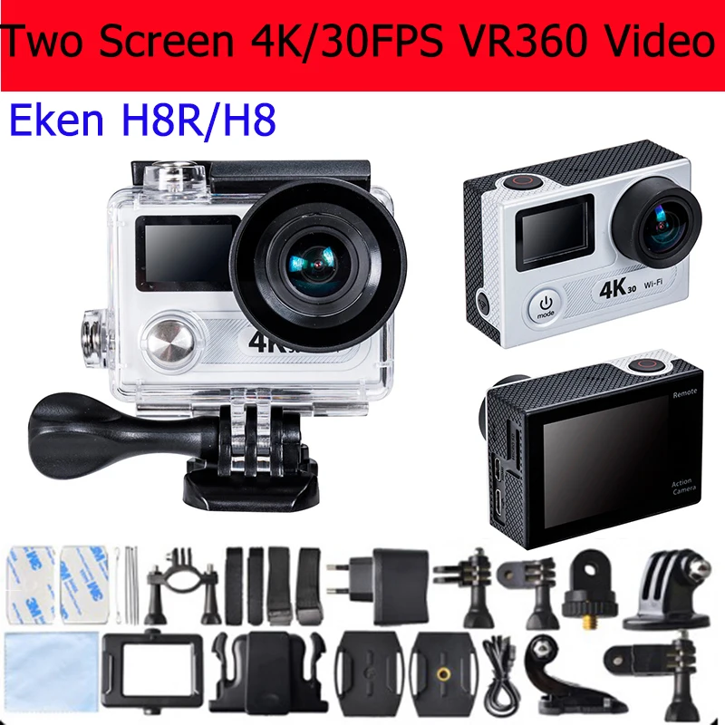 Main Features : 4K Action Camera Original Eken Authorized H8/H8R WIFI VR360 ultra 4K / 30fps WiFi 2.0"Dual LCD Remote Control Helmet Sports Cam