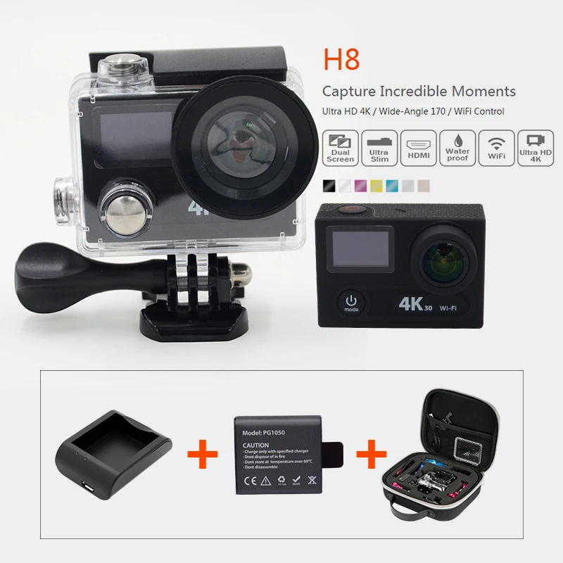 Main Features : EK EN H8 4K WiFi Action camera 1080p HD 2.0 inch Dual Screen Helmet Cam waterproof go pro style sports camera vs sj4000 xiaomiyi