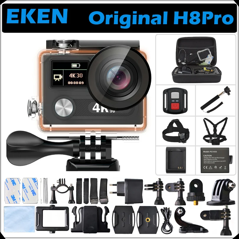 Main Features : EKEN H8 Pro Action camera ultra 4K / 30fps Ambarella A12 3840*2160 remote WiFi pro Helmet Cam go waterproof Sport camera H8Pro