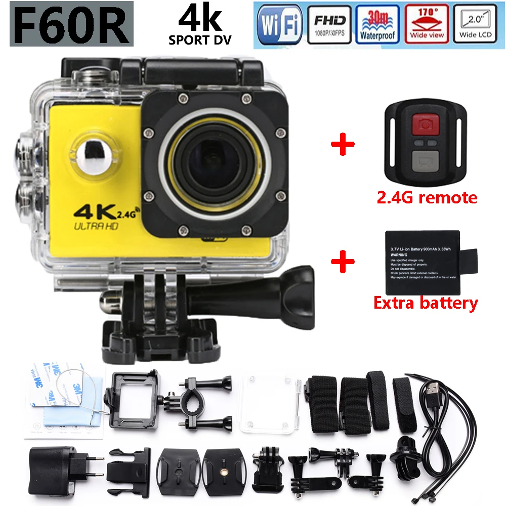 Main Features : Free shipping F60R Ultra HD 4K Action Camera Wifi 2.0 screen 170 Wide Lens waterproof Action cam go pro style Add Extra battery