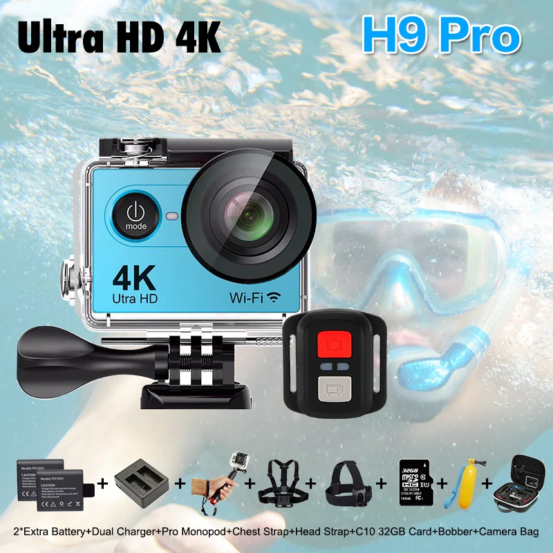 Main Features : Original EKEN H9 Pro Ultra HD wif Action Camera 4K/30fps 1080P/120fps Dual LCD Mini Cam Go Waterproof Pro Sports Camera yi 2