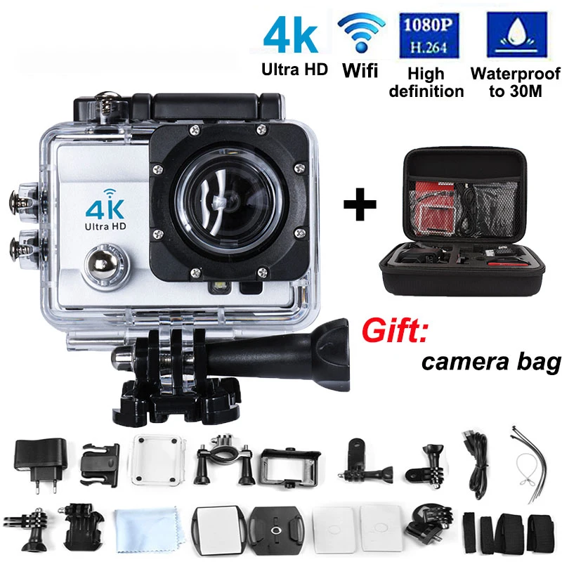 Main Features : 4K Ultra HD Sport Action Camera WIFI 2.0 Inch 16MP1080P 4k HD Waterproof 30m 170 HD wide-angle lens Cam add bag
