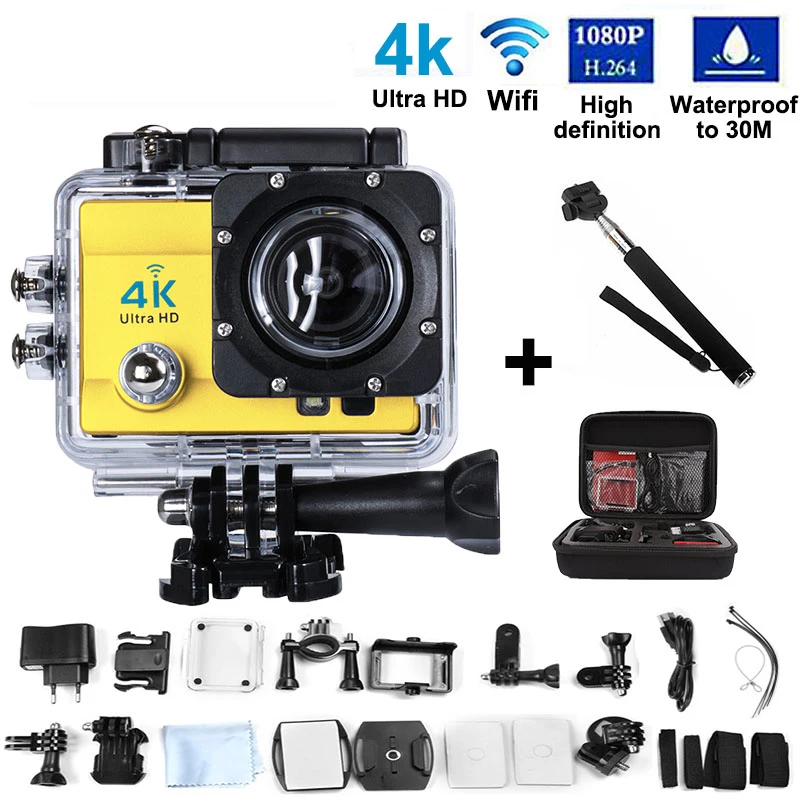 Main Features : Add Monopod+Camera Bag Action Camera 4K Wifi Sport Camera 2.0 Inch 16MP 170 Wide Angle Lens 30M Waterproof Sports dv Cam